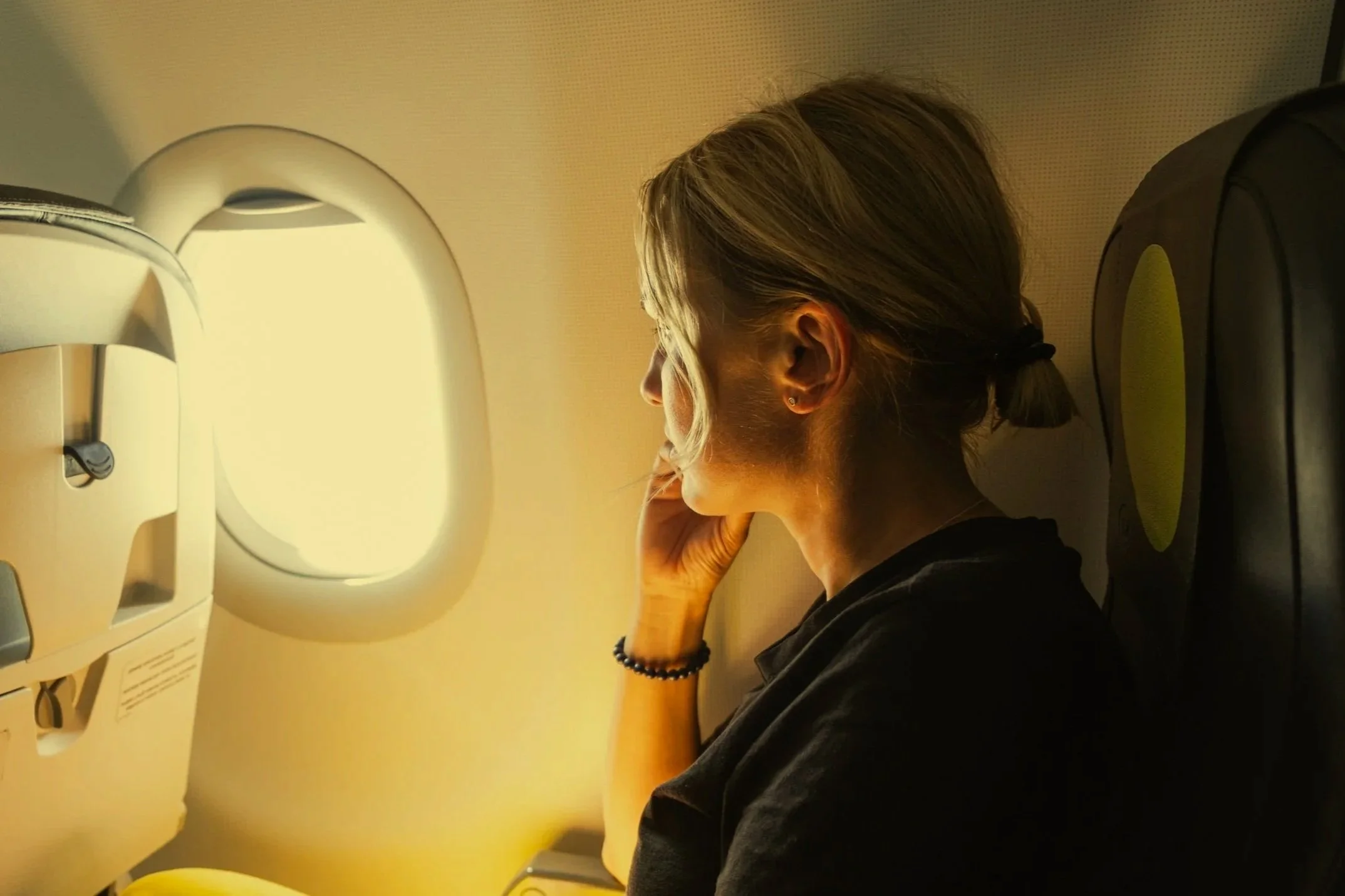 we slouch down the aisle to waiting seat belts,